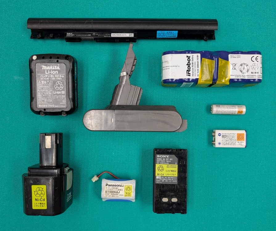 令和7年10月1日より、ご家庭から出るリチウムイオン電池をはじめとする充電式電池と、それらが内蔵された小型家電製品(以下、「充電式電池等」)を「不燃ごみ」として収集します。お出しになる際は以下に従ってお出しください。